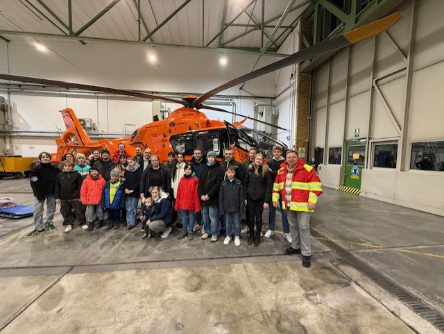 Wir hatten die Möglichkeit, mehrere Hubschrauber aus nächster Nähe zu betrachten und Details zu Technik, Ausstattung und Einsatzabläufen zu erfahren. Besonders beeindruckend war die Landung des Rettungshubschraubers „Christoph 7“ direkt vor unseren Augen – die Vibrationen waren selbst hinter den Hallentoren deutlich spürbar.